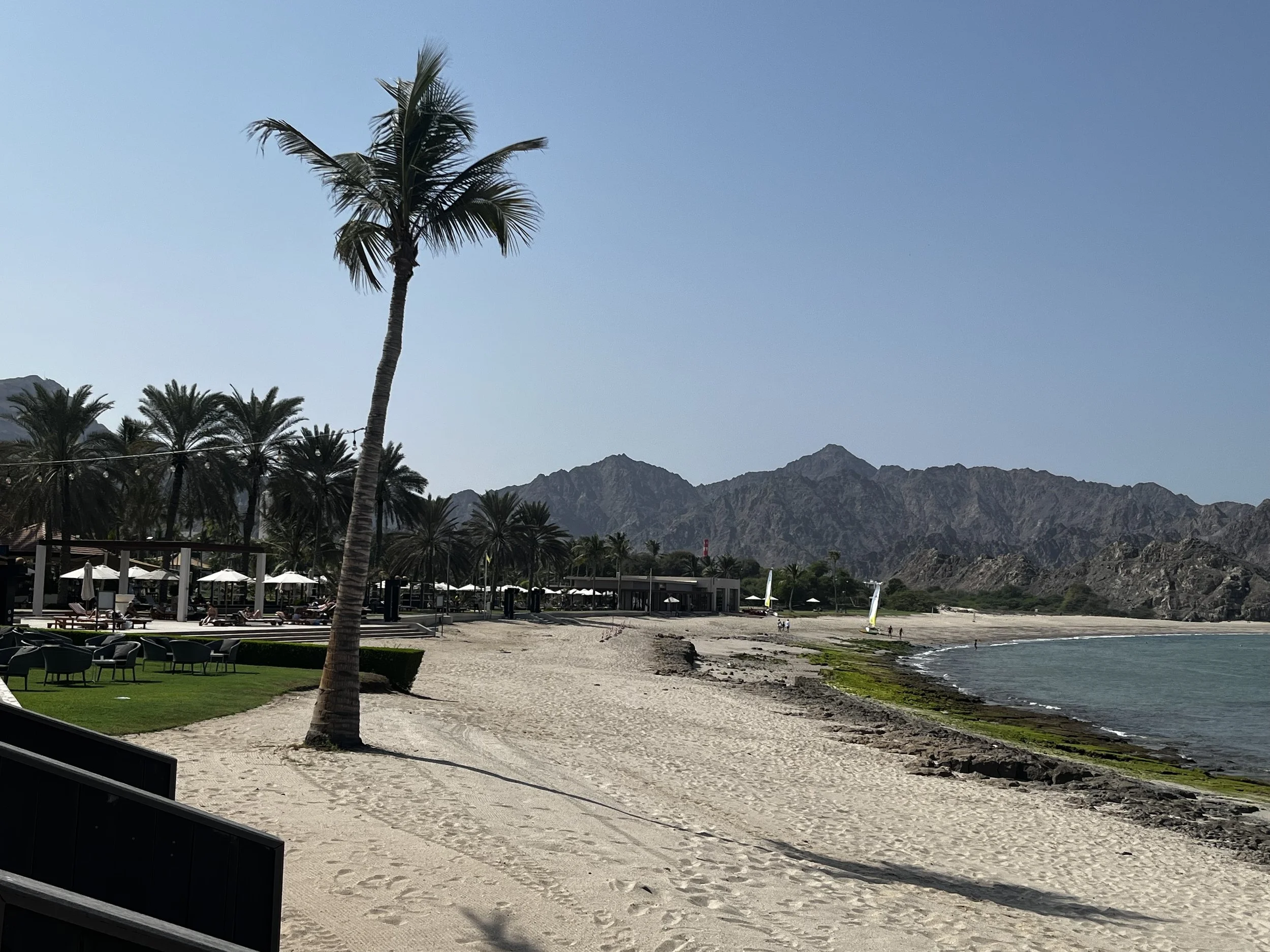 The dress code is relaxed, this is a western-style hotel, and people in the pool and sea are in bikinis and cossies, but I still prefer to stay respectfully modest in Oman if I’m not actually on the beach. I wore a long green dress from Boden, which felt comfortable yet a bit more put-together than my usual casual look. The crowd was a mix of expats, locals, and visiting guests, and the vibe was perfectly balanced, family-friendly, sociable, and refined without being overly formal.