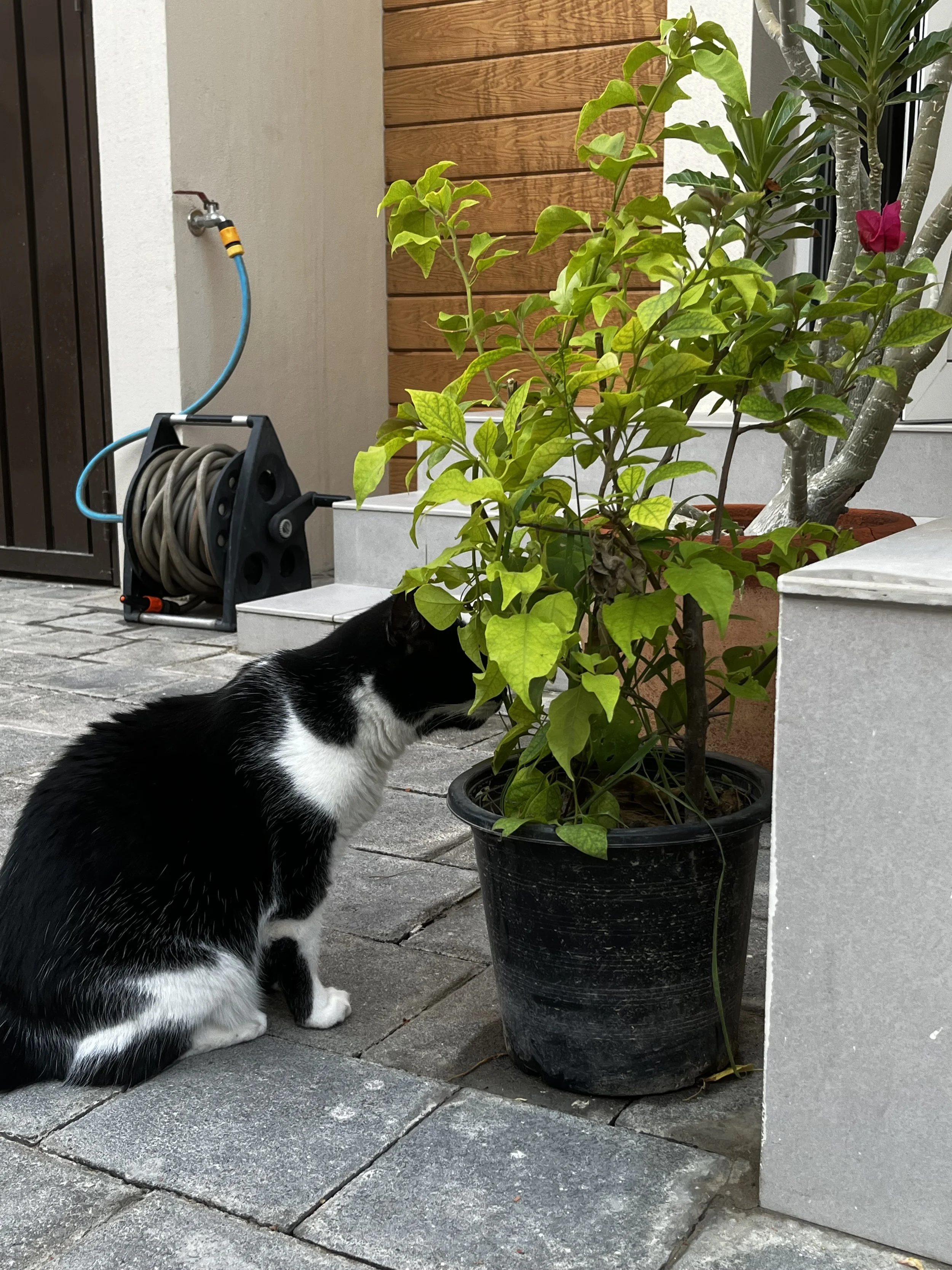By the time we reached our new home, the cats were hungry — though they’d clearly been fed at some point during the journey. The Muscat heat hit us straight away, but thankfully our house was fully air-conditioned, and they quickly found cool corners to hide in.